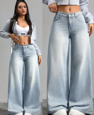 Faded Blue Wide-Leg Jeans
