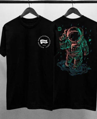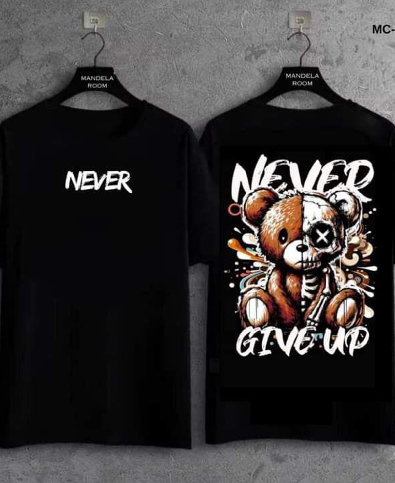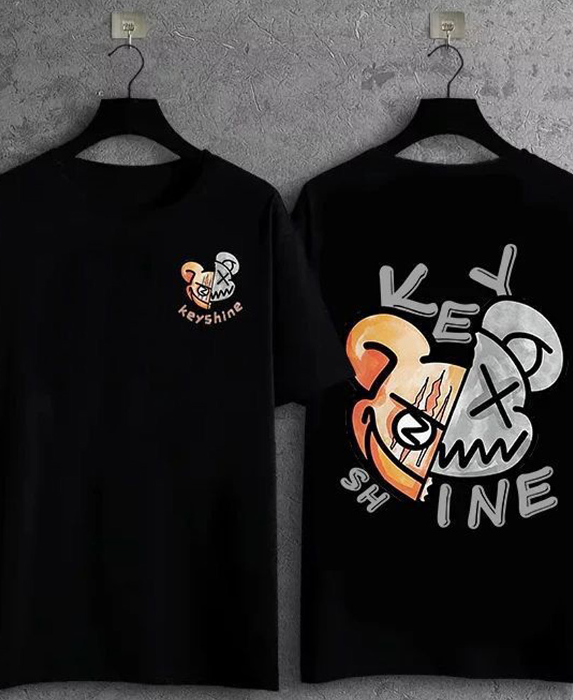 Black five sleeve T-shirt for men Typography solid Regular length Round neck